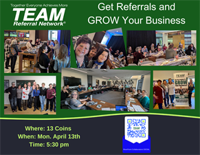 We are a diverse collaborative community of like-minded entrepreneurs that understand the dynamic power of referrals and relationship marketing. When people work together as a TEAM...TOGETHER EVERYONE ACHIEVES MORE!